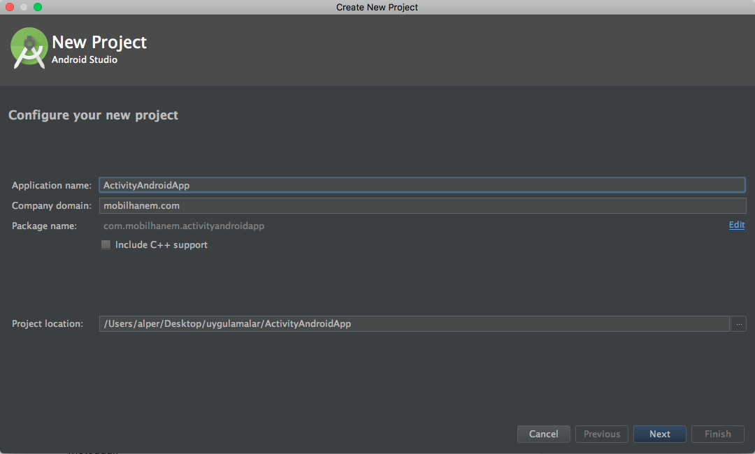 Android Studio da yeni bir android projesi oluşturalım ; ilgili adımları tamamladığımızda ana Activity e sahip olan bir proje oluşturduğumuzu göreceksiniz. MainActivity android uygulamamız başlatıldığında ilk çalışacak olan sınıftır. Her Activity de onCreate methodu içinde setContentView olduğunu göreceksiniz. Bu kısımda Activityimizin hangi görsel yapıya sahip olduğunu belirliyoruz. Diğer bir özellik ise oluşturulan her bir Activity sınıfının AndroidManifest.xml de referansı olmak zorundadır yani bir tanımlama yapılması gerekiyor eğer Android Studio da new->Activity kısmından bir Activity oluşturduysak otomatik olarak Activityimizin referansının AndroidManifest.xml de oluştuğunu göreceksiniz. Diğer bir yöntem ise öncelikle bir new->Java Class oluştururuz daha sonra sınıfımızı Activity den türetiriz ( extends ederiz ) otomatik olarak bir layout oluşmadığından ayrıca bir layout oluştururuz ve setContentView de tanımlarız.