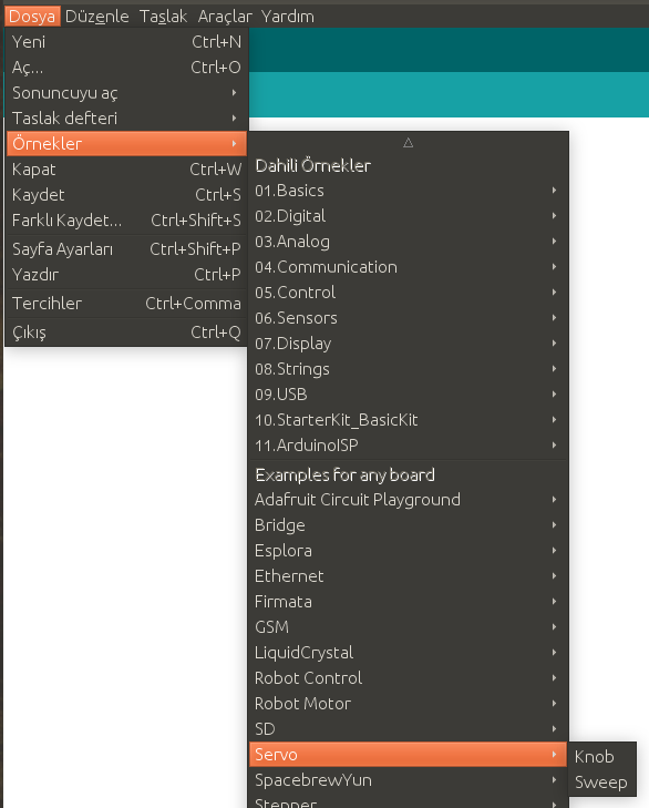 Bu örnek Servo kütüphanesinin kullanımı göstermek için oluşturulmuştur.