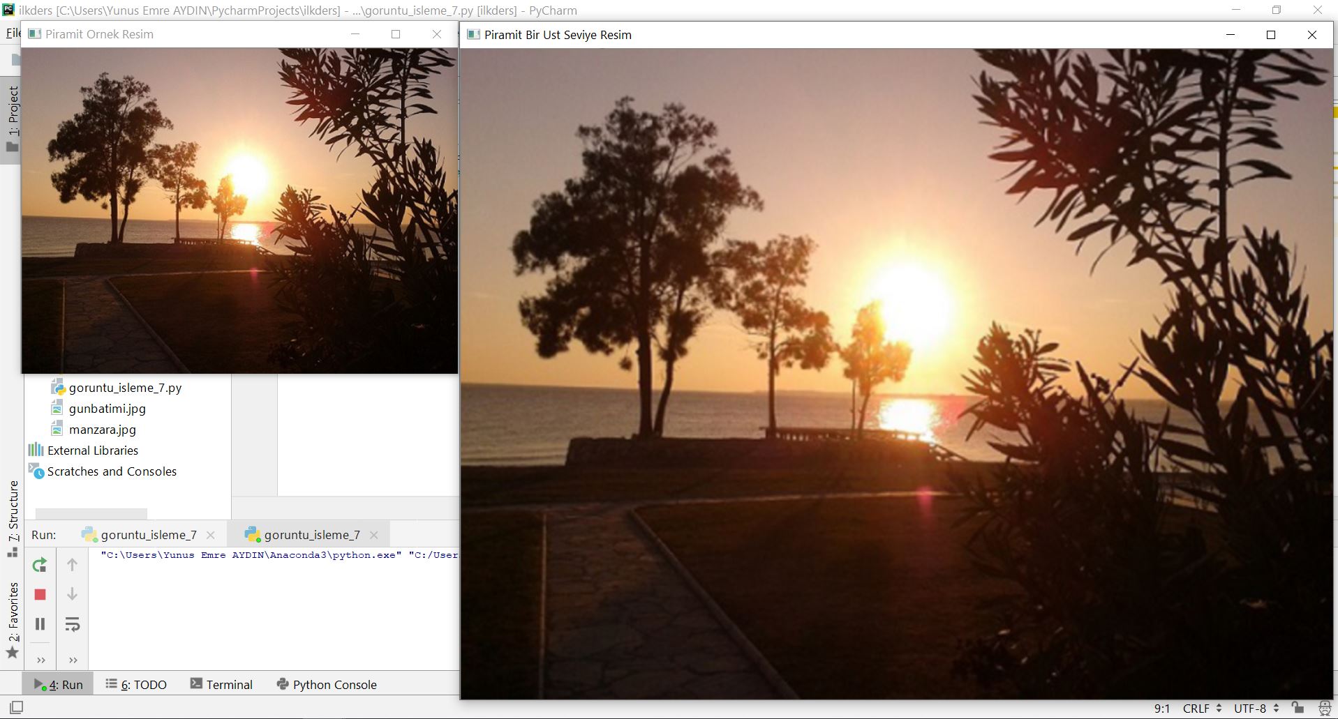 Kod bloğunda bulunan “cv2.pyrUp(resim)” satırı ile resmin piramit işlemi ile bir üst seviyesine getirerek piksel seviyesini artırdık.